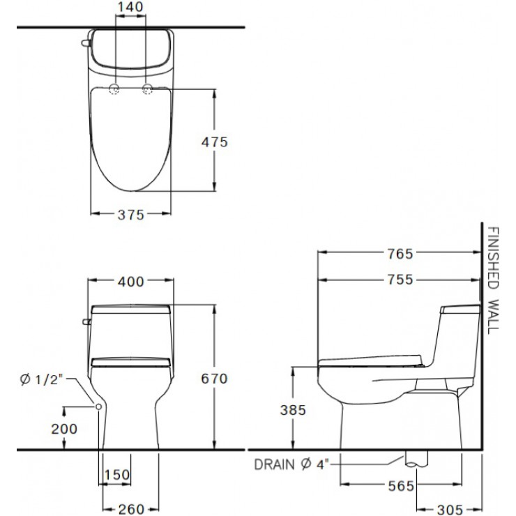 - Thân dài, S Trap (305 mm) ,nắp đóng êm
