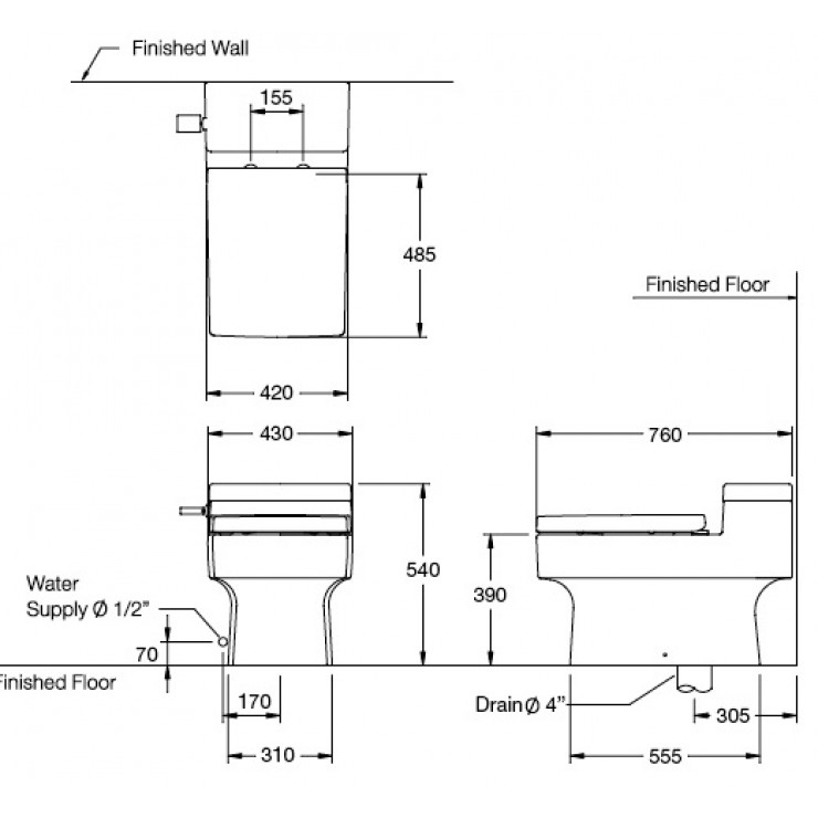 - Thân dài, S Trap (305 mm), nắp đóng êm