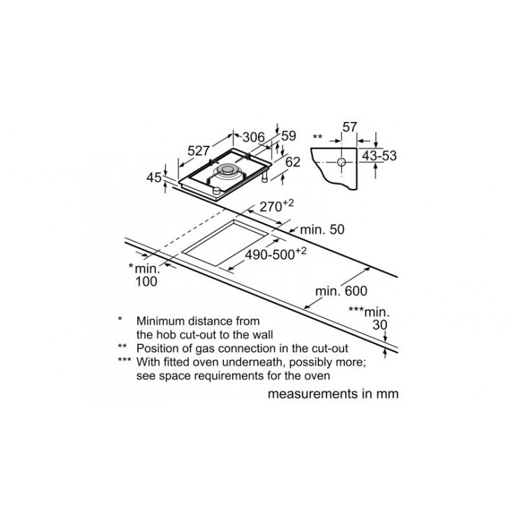 Bản vẽ kích thước bếp ga 1 vùng nấu PRA3A6D70 Bosch