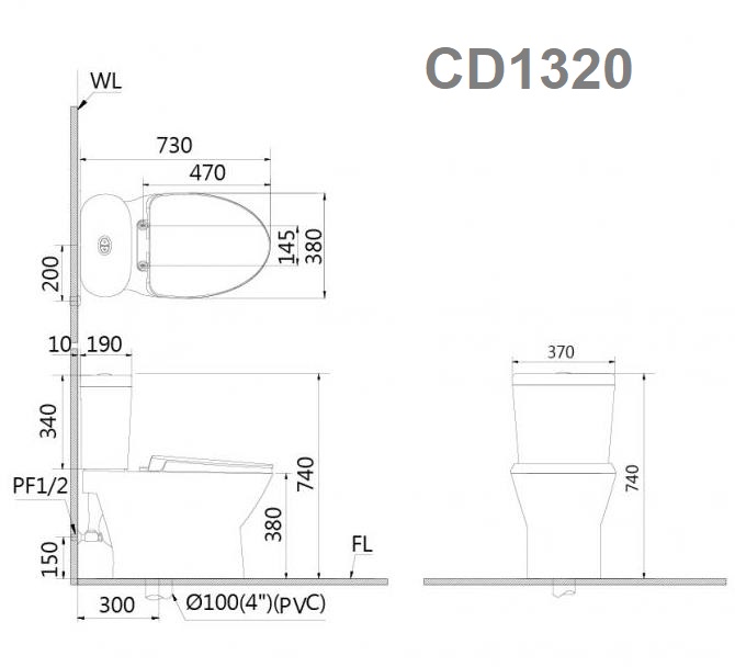 Thông số kỹ thuật của bồn cầu CAESAR CD1320