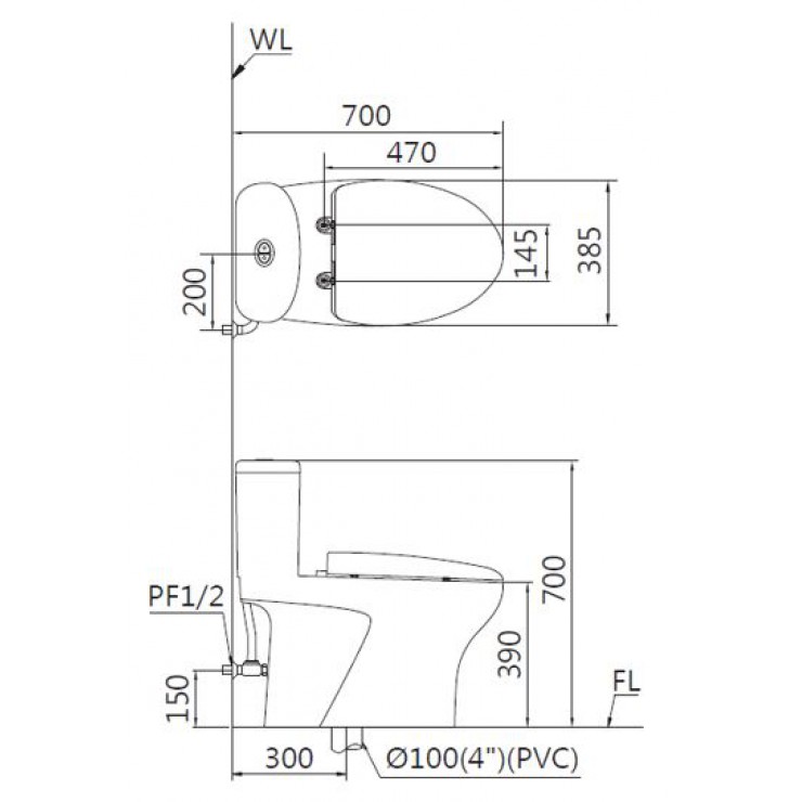 Bản vẽ bồn cầu Caesar C1394 1 khối