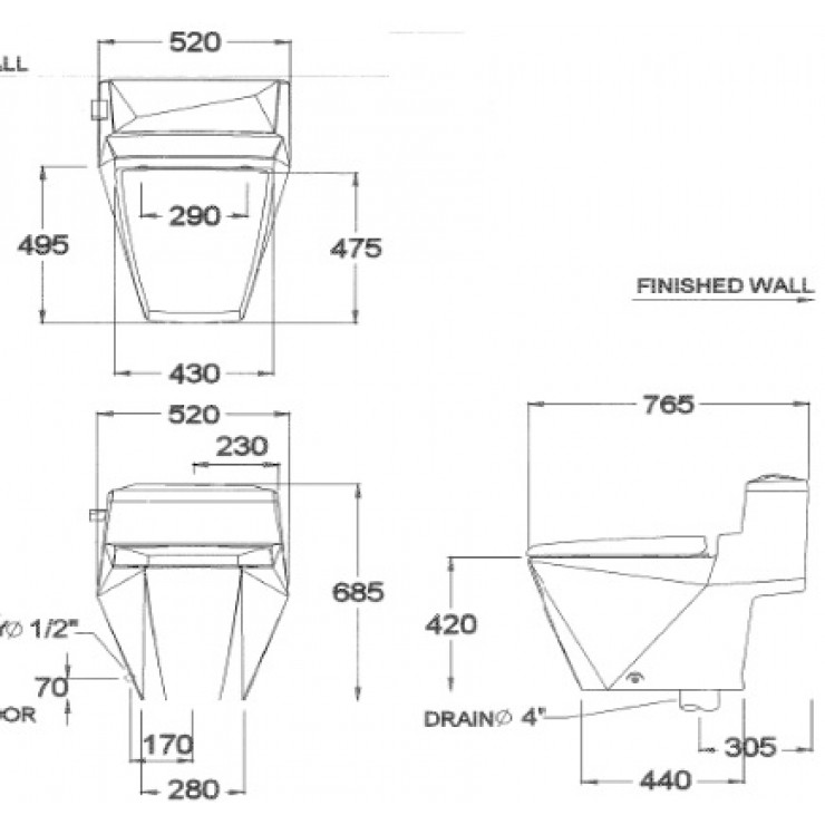 - Thuộc loại bồn cầu Cotto 1 khối dòng Glacier