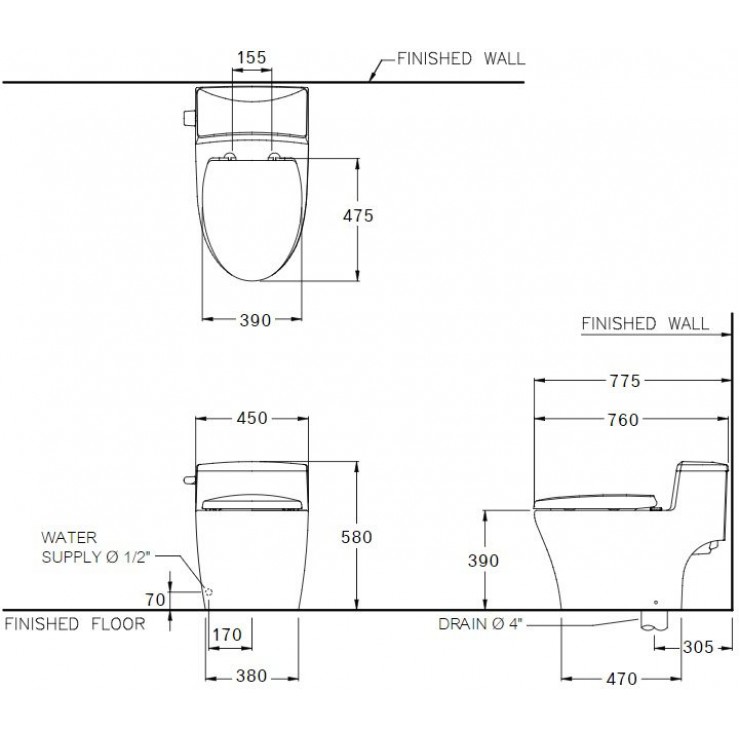- 1 chế độ xả gạt 4,8L tiết kiệm nước