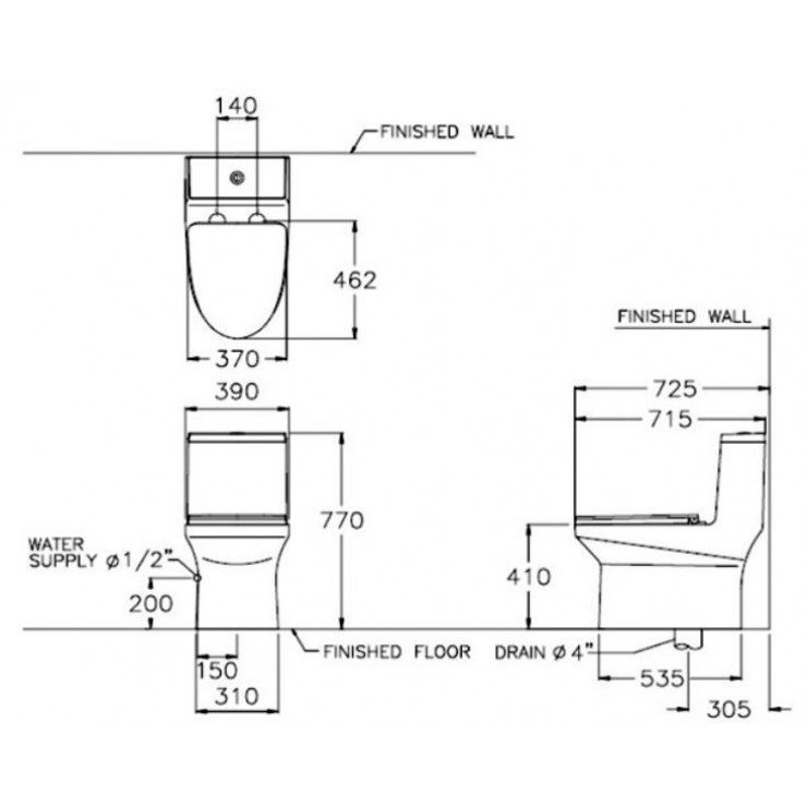 - Thân dài, S Trap (305 mm), nắp đóng êm