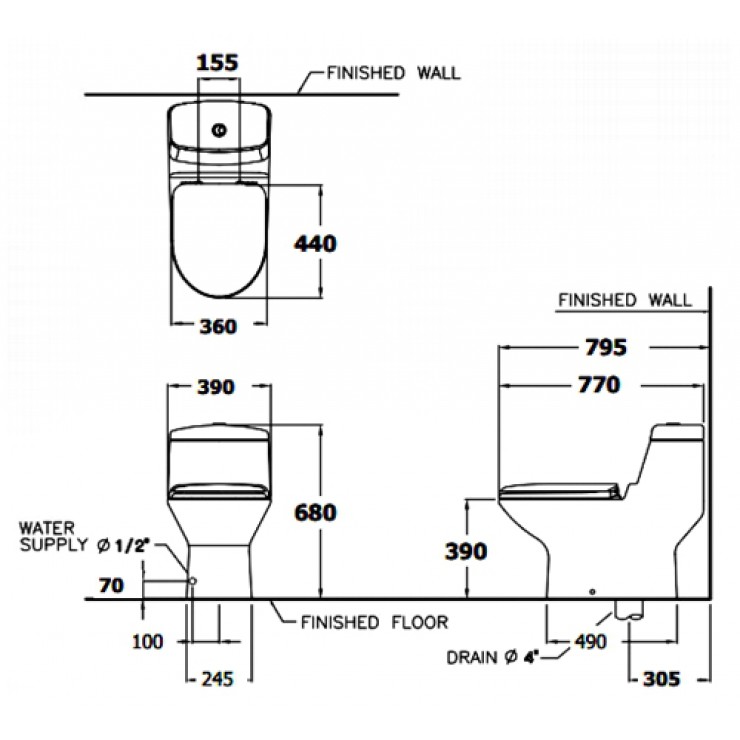 - 2 chế độ xả nhấn: 3L/4,5L tiết kiệm nước