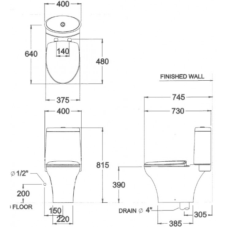 - 400 x 730 x 815 mm