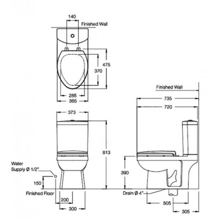 - Thân dài, S Trap (305 mm), nắp đóng êm