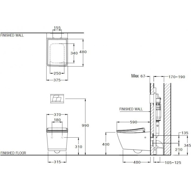 • Thiết kế: treo tường, thoát ngang