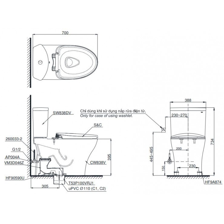 • Nắp rửa điện tử: TCF6631A - Xuất xứ: Malaysia
