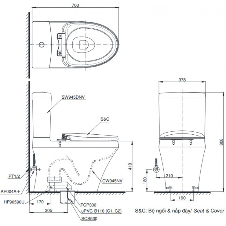 Thông tin bồn cầu TOTO CS945DNT3