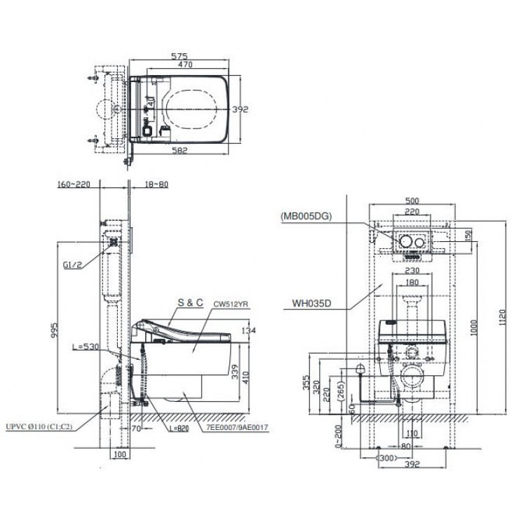 Bản vẽ kỹ thuật xí bệt CW512YR 7EE0007 TCF403EA: