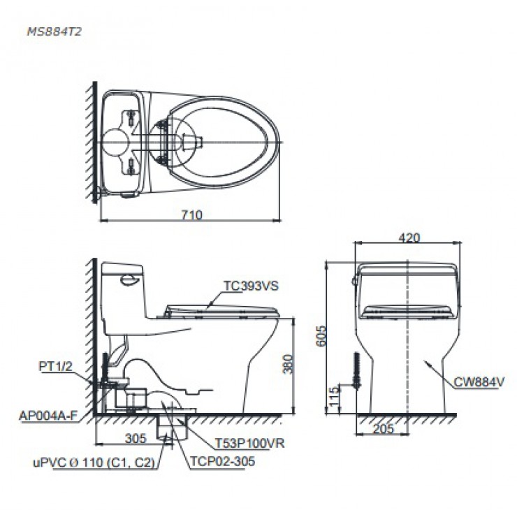Thông tin cơ bản bồn cầu TOTO MS884T8