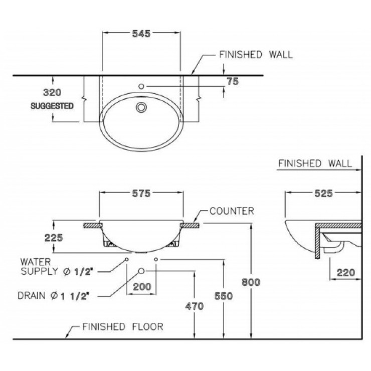 Bản vẽ kỹ thuật chậu Lavabo Cotto C021